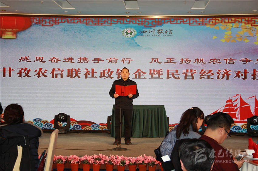 甘孜農(nóng)信聯(lián)社董事長周榮強(qiáng)致辭,表示甘孜農(nóng)信聯(lián)社將切實(shí)增強(qiáng)使命感和緊迫感,進(jìn)一步把思想和行動(dòng)統(tǒng)一到州委州政府的決策部署上來,圍繞黨的十九大對鄉(xiāng)村振興戰(zhàn)略的總體要求和促進(jìn)民營經(jīng)濟(jì)健康發(fā)展新戰(zhàn)略新決策新部署,堅(jiān)持服務(wù)“三農(nóng)”、服務(wù)小微企業(yè)、服務(wù)地方經(jīng)濟(jì)的定位不動(dòng)搖,為全州提升農(nóng)業(yè)現(xiàn)代化水平、促進(jìn)民營經(jīng)濟(jì)健康發(fā)展和城鄉(xiāng)融合發(fā)展提供強(qiáng)有力的金融支持。