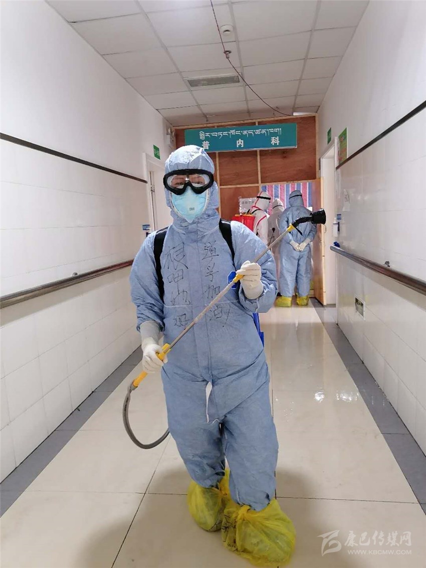 除了日常護(hù)理,根呷她姆的還要負(fù)責(zé)每日病房的消毒工作、垃圾清理以及清潔衛(wèi)生工作?!跋竟ぷ鞲裢庵匾?,必須做到不漏一個(gè)死角?!备人窂?qiáng)忍著84消毒液刺激引起的嗆咳及生活垃圾引起的惡心發(fā)嘔,一絲不茍,任勞任怨,做好每一天的消殺清潔工作,讓病毒無處遁形。在同事面前她是護(hù)士長、家長,在病人面前,她是護(hù)士、護(hù)工、清潔工、家屬、心理老師……根呷她姆每天在各種角色間轉(zhuǎn)換自如,不怕臟、不怕累、不怕苦,拼盡全力只為打贏這場沒用硝煙的戰(zhàn)爭!