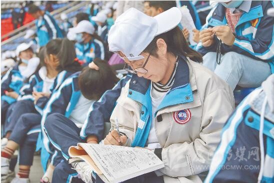 早上7點30分左右,記者來到這片特殊的學(xué)生方陣時發(fā)現(xiàn),不少學(xué)生把課本帶去了現(xiàn)場,正趁著候場間隙埋頭苦讀。據(jù)康定中學(xué)老師李虓偉介紹,同學(xué)們是排練隊伍中進(jìn)場時間最晚、排練時間最短的一個團(tuán)隊,“在不耽誤課程的情況下,孩子們將所有能抽出來的時間全部奉獻(xiàn)給這次演出了,所以每次排演總是格外地認(rèn)真,絲毫沒有怨言,為了節(jié)約時間,同學(xué)們還利用訓(xùn)練期間短暫的休息時間,埋頭溫習(xí)課本、做作業(yè)。”