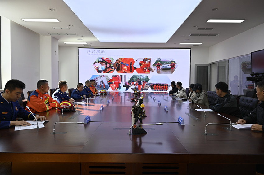 采訪結(jié)束后,媒體記者應(yīng)邀現(xiàn)場觀摩了消防救援訓(xùn)練項目。