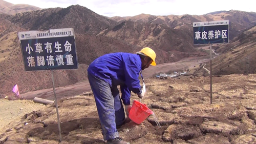 據(jù)介紹,施工前工作人員先將施工區(qū)域的原生草皮進行剝離,移至他處并進行養(yǎng)護,待施工結(jié)束后,再將剝離的草皮移回原處進行回鋪;對開挖造成地表植被破壞的地段播撒適合高原生長的草籽,直到長出綠草?,F(xiàn)場的施工人員介紹說,塔基開挖過程中,先將熟土(表土)、生土分開堆放,并采取隔離(鋪設(shè)棕墊等)、攔擋、覆蓋等措施,回填時先將生土回填,熟土最后置于表面,以保證植被的恢復。