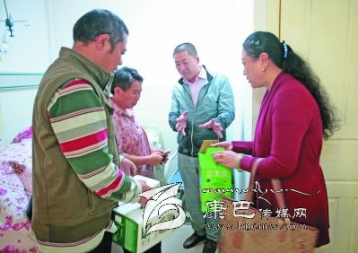 雖然大家都在獻愛心,但這點錢也顯得杯水車薪。結(jié)對認親小分隊回到報社后,立即向報社黨委作了匯報,第二天中午,報社派出人員代表黨委、編委會、結(jié)對支部和全體職工,到州人民醫(yī)院探望蘇國全,這才出現(xiàn)了本文開頭的一幕。在病房照顧蘇國全的妻子和女兒看見“親戚”單位來了人,眼里閃動著激動的淚光。“這幾天借來的錢都要用光了,如果停藥就會有危險。”蘇國全的妻子饒大姐說。報社領(lǐng)導(dǎo)安慰她說,“不要急,我們大家一起想辦法。”并將全社職工捐贈的10000元現(xiàn)金交到她的手中。當她從報社領(lǐng)導(dǎo)手中接過愛心款時,母女倆的淚水奪眶而出,連聲感謝。