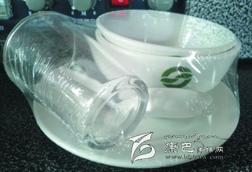 用塑料薄膜包裹的消毒餐具,內(nèi)有盤子、碗、醋碟、勺子、杯子,外加一雙筷子。當(dāng)它們放到你面前時,看起來很干凈,包裝膜上還印有“衛(wèi)餐消證號”、生產(chǎn)日期和廠家等信息,看似很正規(guī)。但有時你會發(fā)現(xiàn),戳破那層膜,部分消毒餐具會有污跡、飯菜渣或水跡等。這些餐具都是經(jīng)過高溫消毒的,為何會有這些污跡?它們是怎么漂洗出來的?又是怎么消毒的?