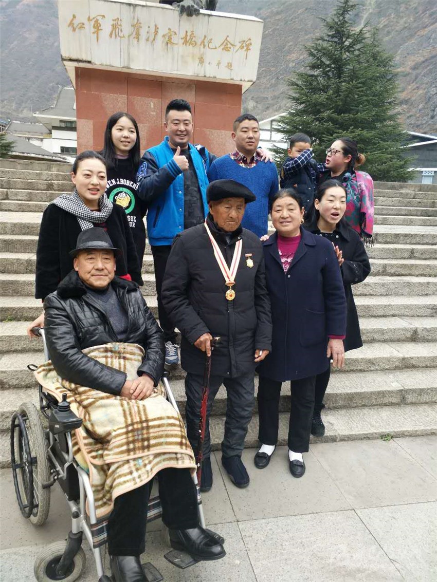 王瑞生專門帶領(lǐng)28名兒孫們前往瀘定橋紀(jì)念碑前合影,向他們講述紅軍長(zhǎng)征這段歷史。他說得最多的一句話就是,“只有共產(chǎn)黨才能給我們帶來(lái)幸福生活,要不忘黨恩,回報(bào)社會(huì)?!崩先颂厥獾募t軍情結(jié)感染著兒孫們,老人傳承著紅軍精神,不忘初心,永遠(yuǎn)向前。“老人身上體現(xiàn)的不向困難低頭,堅(jiān)強(qiáng)不屈的精神,正是當(dāng)前開展精準(zhǔn)扶貧工作所需要倡導(dǎo)的精神,只要我們發(fā)揚(yáng)紅軍精神,就一定能夠過上好日子?!崩先说膶O子告訴記者,在老人的激勵(lì)下,現(xiàn)在家人昂揚(yáng)向上,幸福美滿。
