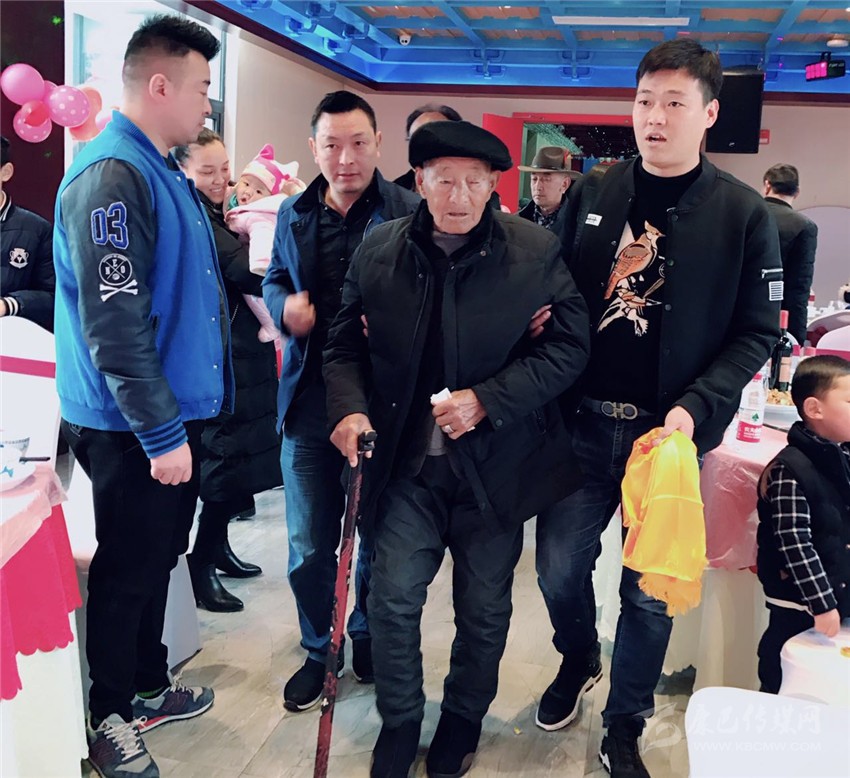 35日,在瀘定縣烹壩鄉(xiāng)十里香酒店,按照當(dāng)?shù)貍鹘y(tǒng),王瑞生的兒孫們提前為他隆重過百歲大壽。雖然已近百歲高齡,但王瑞生精神矍鑠,思路清晰,談吐自如,面色紅潤(rùn)的他身著簡(jiǎn)樸,胸前始終戴著2016年由中共中央、中央軍委頒發(fā)的“中國(guó)工農(nóng)紅軍長(zhǎng)征勝利80周年紀(jì)念章”,接受親友們的祝福?!白D】甸L(zhǎng)壽,開開心心”。親人們不絕于耳的祝福,老人心滿意足,笑容滿面?!昂?,好,我的家人團(tuán)圓和睦,家庭幸福,是我最大的心愿。”如今,老人已是四世同堂,家人濟(jì)濟(jì)一堂,親情流淌,老人幸福開懷。