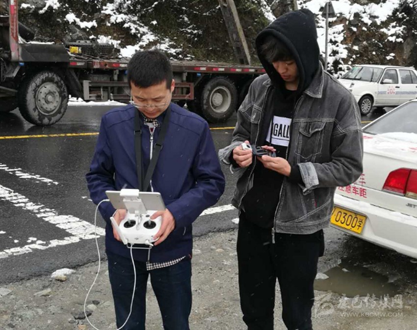 新媒體記者使用無(wú)人機(jī)進(jìn)行航拍。