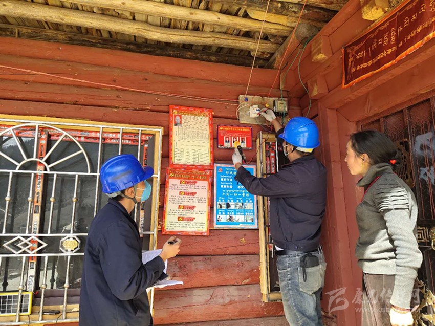 理塘公司為村戈鄉(xiāng)12戶貧困戶及五保戶安裝新電表及布線。