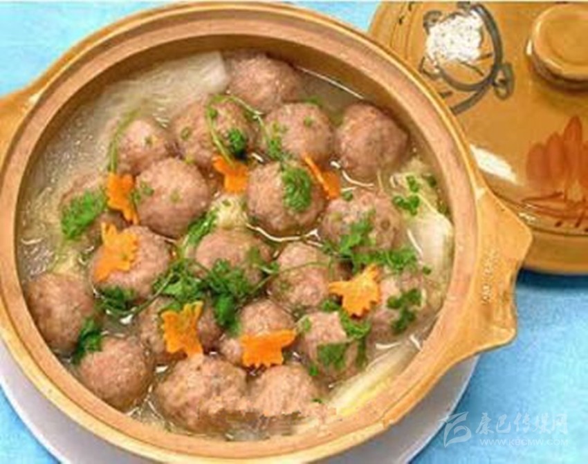 2、蛋清和干豆粉攪和,魚(yú)肉泥在攪和的豆粉蛋清中做成肉丸子,在化好的酥油中炸熟。