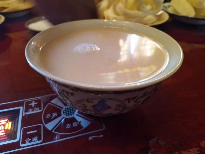 牛奶除提取酥油外,藏族民眾還用它制作奶茶或酸奶子。酸奶子康區(qū)稱“學(xué)”,有兩種,一種是用鮮奶發(fā)酵制成,味帶甜:一種是用提煉過酥油的奶發(fā)酵制成,味酸。酸奶狀似豆花,可直接或放糖飲用,有時(shí)用饃饃或鍋魁蘸著吃。酸奶子不僅是草原夏天的飲料,也是藏族民眾充饑解渴的食品。