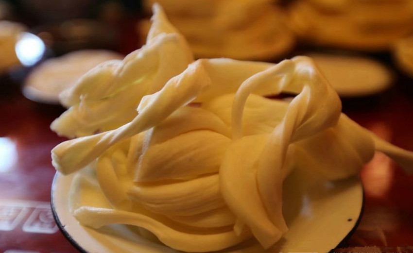 酥油古稱醍醐,元代才開始叫酥油。元代宮廷食醫(yī)思慧在《飲膳正要》中記述了酥油的提取方法:“取凈奶子,不住手用阿赤打,取浮油者為思馬哥油,今亦云曰酥油?!蔽闹小鞍⒊唷笔翘崛∷钟偷哪酒?。提取酥油有專門的酥油桶,桶里有一個(gè)連桿木柄,倒上牛奶,蓋上桶蓋后,連續(xù)上下抽動(dòng)連桿木柄數(shù)百上千次,黃澄澄的酥油塊就全部浮在上面了。把酥油塊用手捏成坨,擠去水份,丟進(jìn)清水里泡一會(huì)兒,就可以食用了?,F(xiàn)在牧區(qū)打酥油普遍用奶油分離器,既快又省。